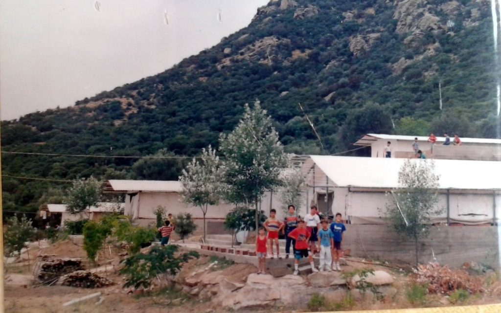 Ο γέροντας μητροπολίτης Κωνστάντιος υποβασταζόμενος πορεύεται για τη θεμελίωση της κατασκήνωσης. Η έκφραση του προσώπου του και η σπουδή του δείχνουν το βαθύτατο πόθο του για μια καινούρια κατασκήνωση.