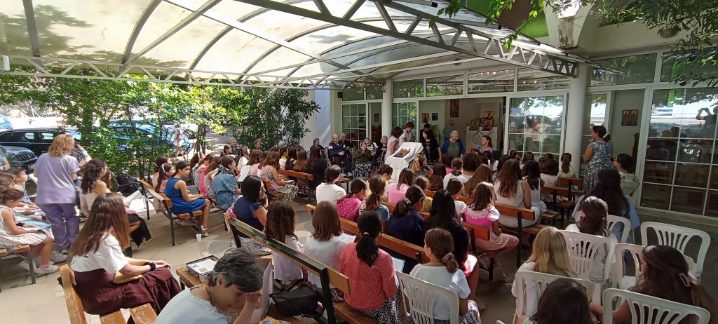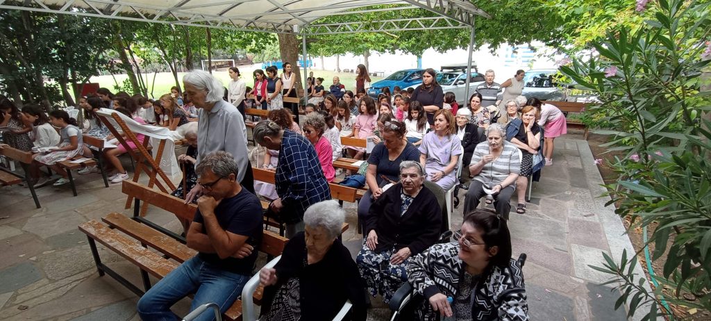 Στις 10 Ιουλίου, με πολύ καλή διάθεση απ΄ όλους και με ιδανικό καιρό, ξεκινήσαμε να επισκεφτούμε την Κατασκήνωση Μέγας Κωνσταντίνος, στην περίοδο που φιλοξενεί τα κορίτσια Δημοτικού. Συμμετείχαμε στη Θεία Λειτουργία και μεταλάβαμε τη Θεία Κοινωνία. Στη συνέχεια… Τι ωραία παρέα ήταν αυτή! Πόσο όμορφη η συνεύρεση των ηλικιωμένων φιλοξενούμενών μας με τα παιδάκια της ευλογημένης κατασκήνωσής μας στη Νέα Ηρακλείτσα. Μουσική, τραγούδι, κεράσματα, ζωγραφιές και χαμόγελα, πολλά χαμόγελα από τα μικρά κορίτσια της Κατασκήνωσης. Πολλές ευχαριστίες στην αρχηγό κα Χρυσούλα Τιφκιτσή, τις υπαρχηγούς κες Απόσογλου Αγαθή και Παγωνάκη Σαραντούλα, και όλα τα στελέχη για τη συνδρομή τους και την πολύ ζεστή και εγκάρδια φιλοξενία τους.