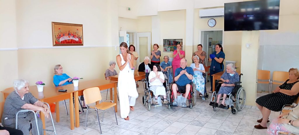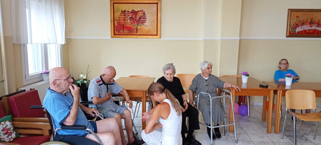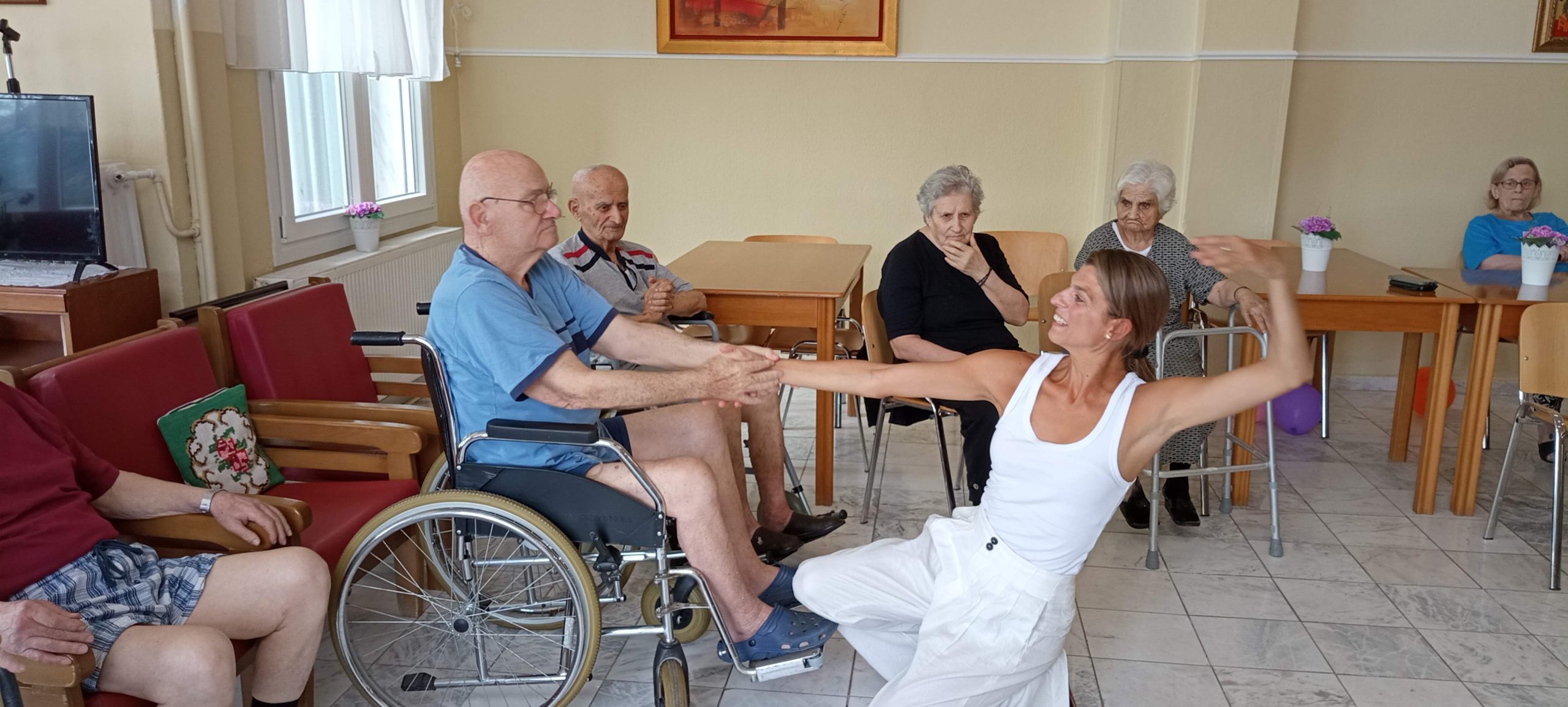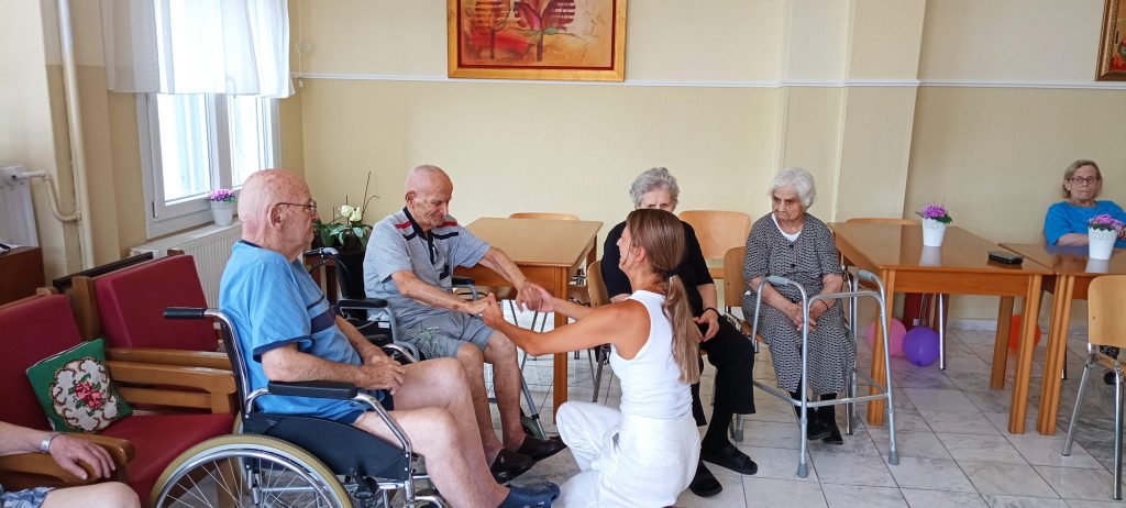Η Καβαλιώτισσα στην καταγωγή κα Ειρήνη Κρέζα που διαμένει στο εξωτερικό, στα πλαίσια της επίσκεψής της στα πατρώα εδάφη, προσφέρθηκε, επειδή η σωματική δραστηριότητα αποτελεί σημαντικό παράγοντα όσον αφορά την προαγωγή και διατήρηση της υγείας και στους ανθρώπους της τρίτης ηλικίας, να μας παρουσιάσει και να εφαρμόσει μέρος από το έργο της, στους φιλοξενούμενους της δομής μας. Οι ηλικιωμένοι μας, άντρες και γυναίκες το αγκάλιασαν με πολύ χαρά, όπως πιστοποιούν οι παρακάτω φωτογραφίες και video.